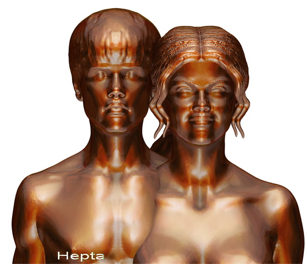 Cei doi apar complet goi, dar cu zonele intime acoperite cu frunze, exact ca primul cuplu al tuturor timpurilor.
